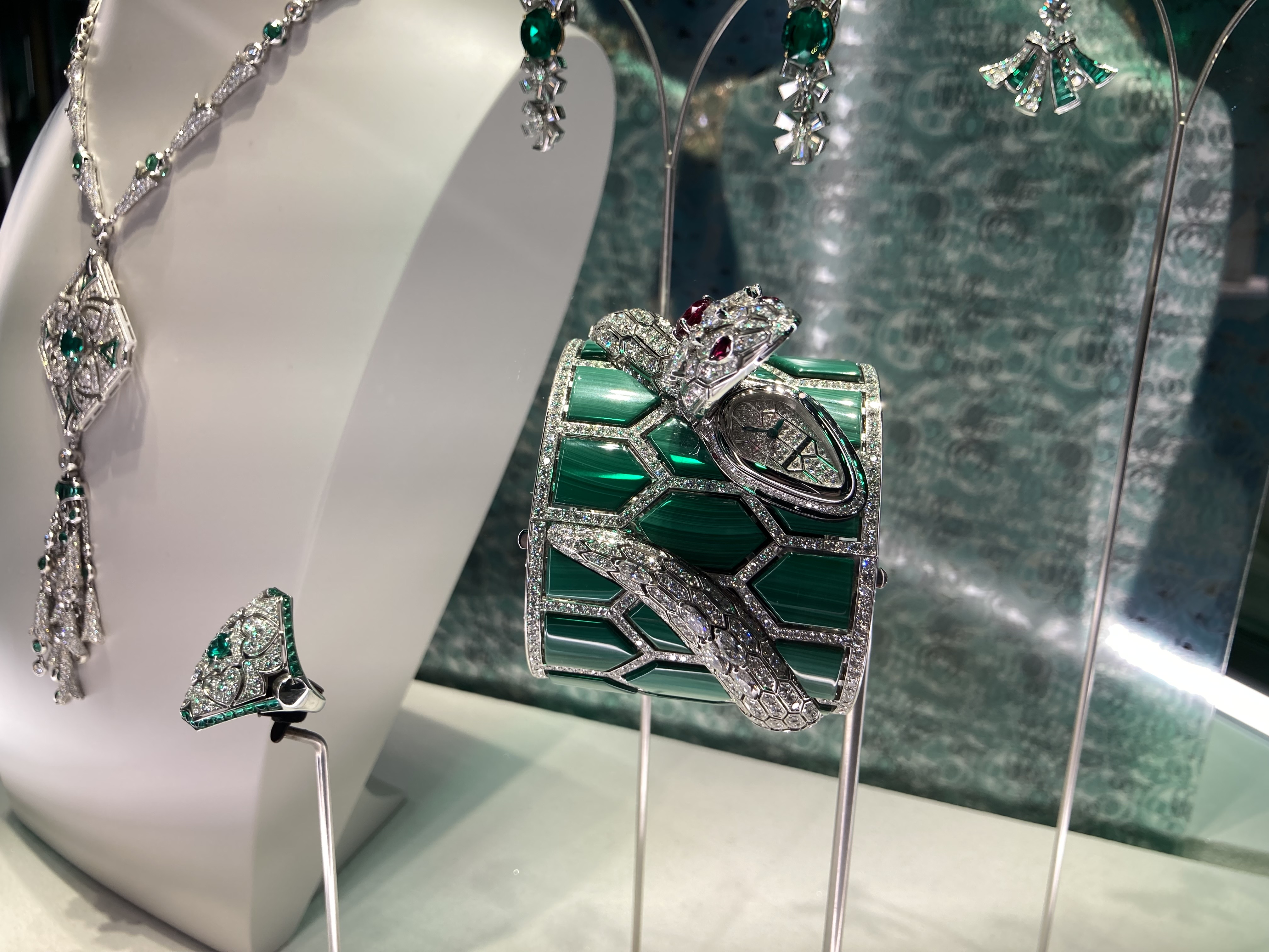 마지막으로 '멀티컬러'의 즐거움 입니다. 레드가 담고있는 강렬한 에너지, 블루가 담고 있는 천상의 고요함, 그린이 담고 있는 고혹적인 자연. 모든 컬러가 모여 부딪히기도 하고 조화를 이루기도 합니다. 총 천연 색의 향연이죠. 눈이 돌아간다는게 딱 이럴 때 쓰는 표현 같습니다. 멀티컬러에서는 시계라인도 많이 볼 수 있습니다. 시계의 기술적인 완성도 보다는, 주얼리에 가까운 시계를 잘 만들어냅니다. 사실상 시계 기능이 들어간 불가리 주얼리라고 볼 수 있습니다. 굉장히 화려한 디자인으로 여성 라인이 인기가 높습니다.