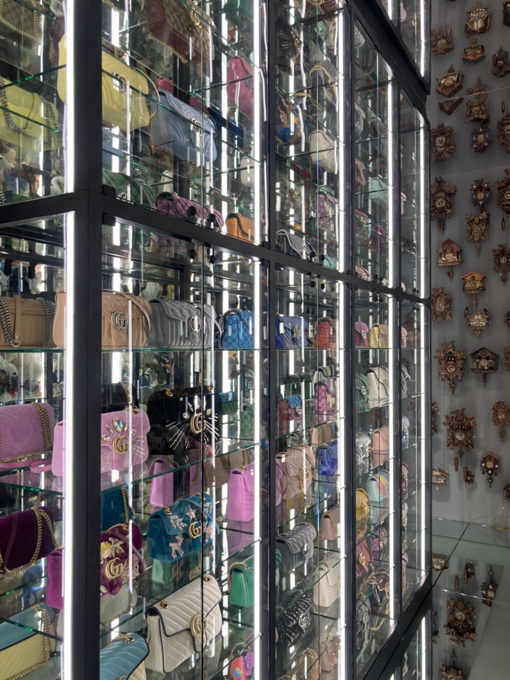 한 쪽은 뻐꾸기 시계가 가득 걸려있고,