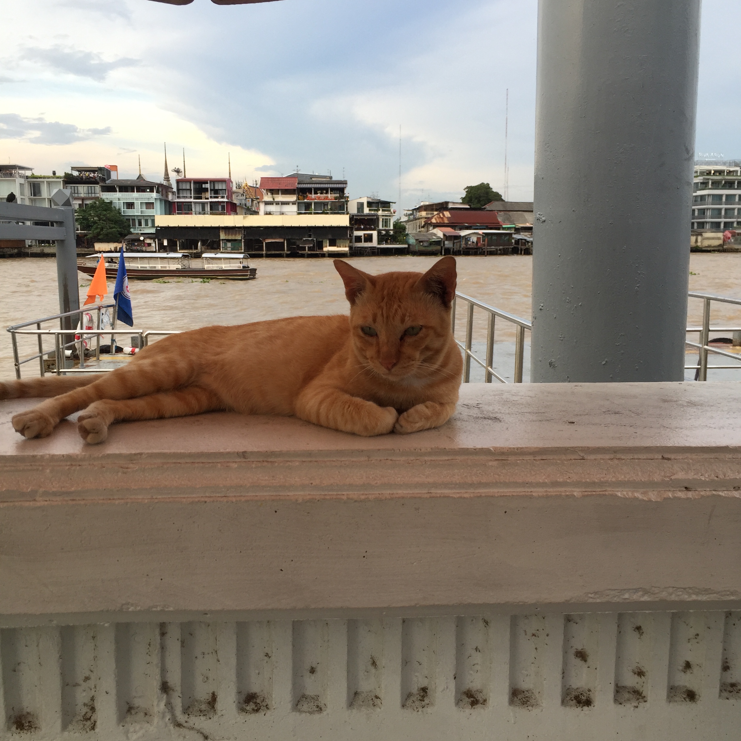 짜오프라야 강은 방콕을 가로질러 흐르는 강입니다. 태국에서 가장 큰 강이기도 하죠. 짜오프라야 강은 방콕 교통에서 중요한 역할을 하고, 많은 수상택시, 수상버스, 물자나르는 선박들이 수시로 이동합니다. 강 자체는 굉장히 흙탕물입니다. 간혹 이 강에서 사는 메기를 볼 수 있습니다.