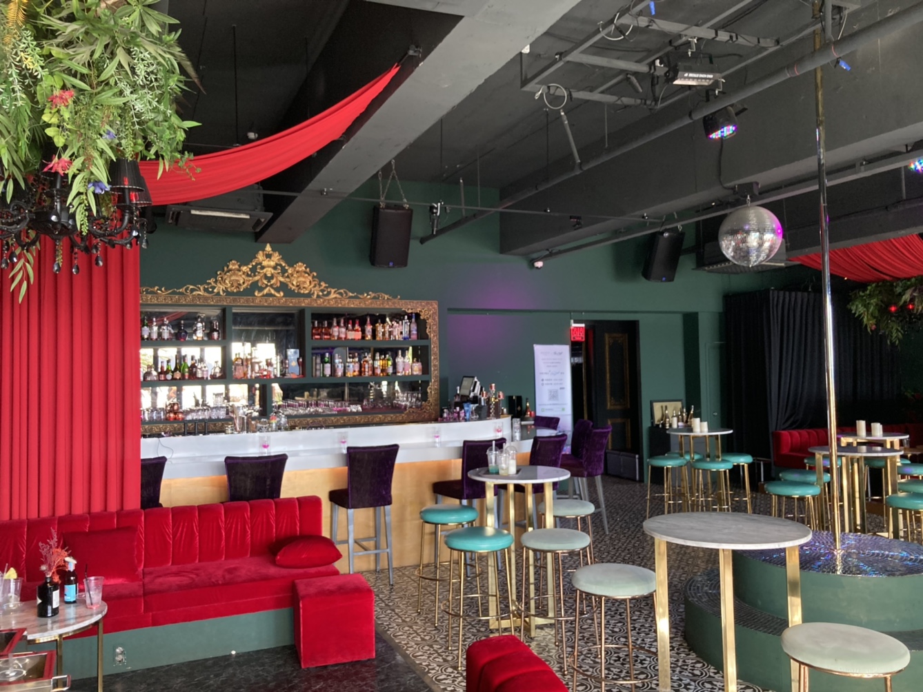 미러볼도 있고 폴댄스바도 설치되어 있다.