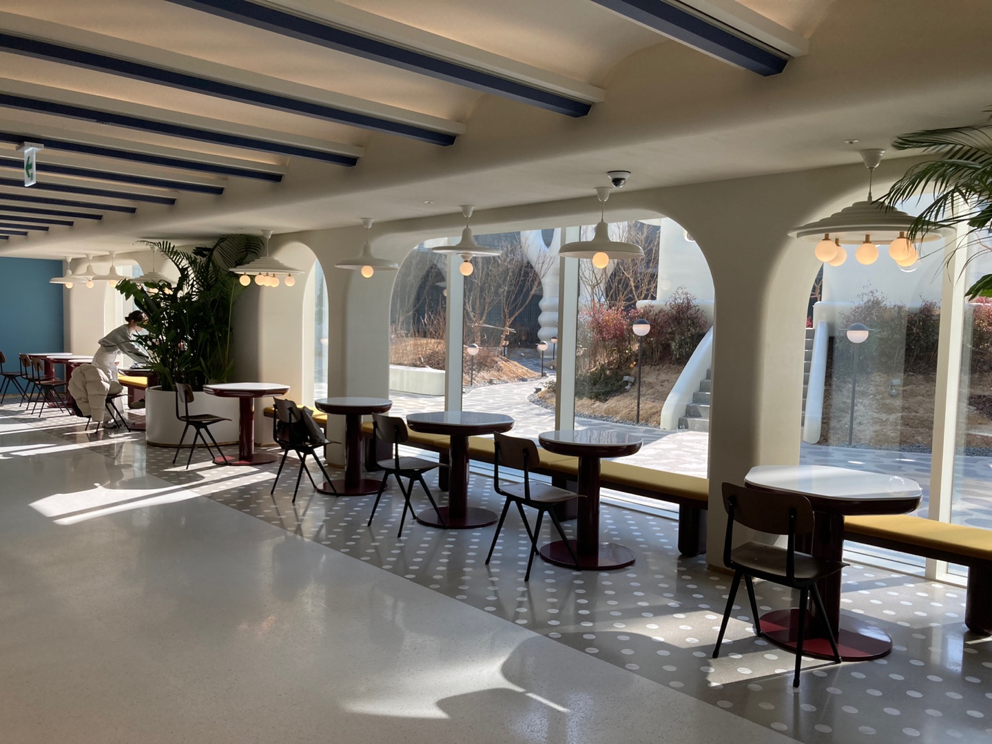 한 쪽엔 햇빛이 드는 창가자리도 준비되어 있다. 창가 바깥도 하이메 아욘이 새로 디자인한 옥상 공원 '게이츠 가든'으로 바뀌었다.