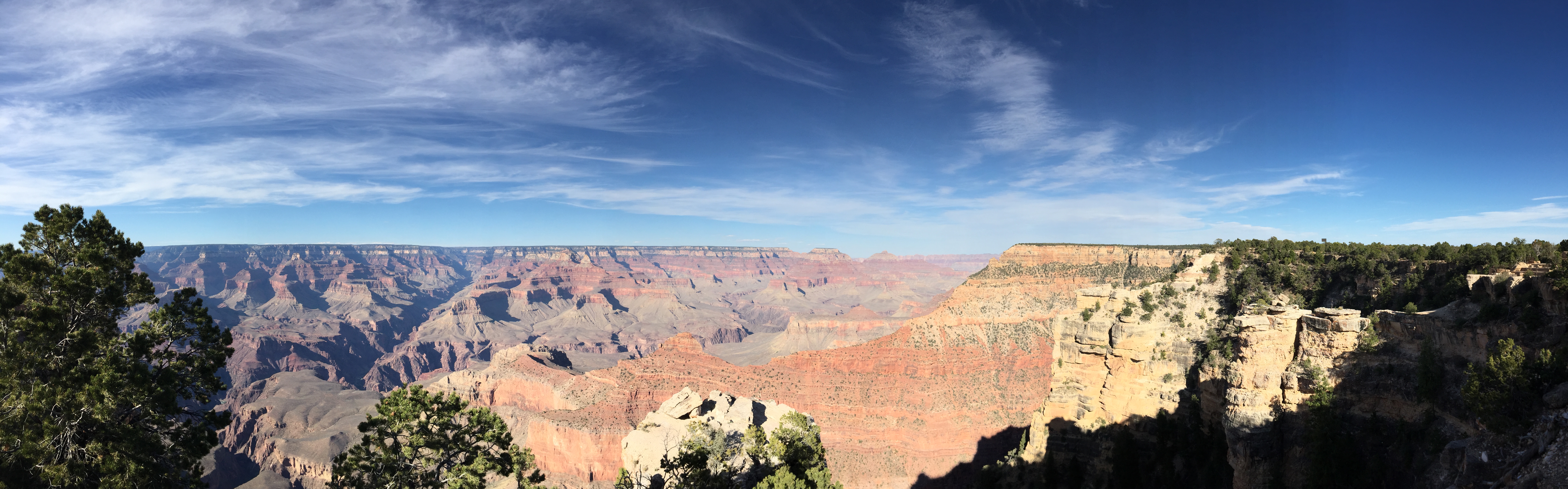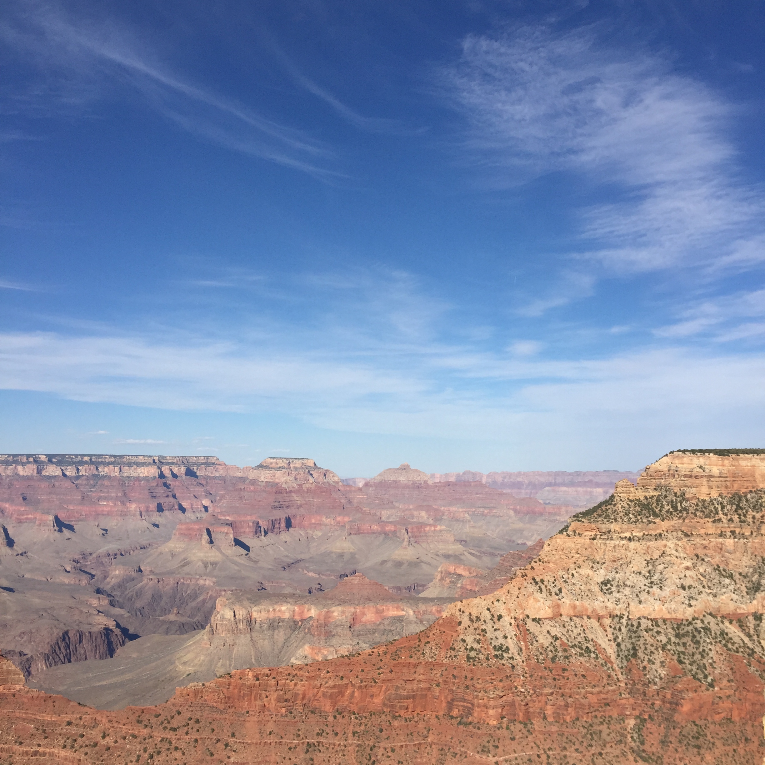 햇빛의 차이 때문인지 같은 그랜드 캐니언 협곡임에도 흙색깔이 달라보인다. 정말 신기한 건 협곡의 정상 부분의 높이가 거의 비슷하다는 것이다. 보통 산맥들을 보면 높이가 들쑥날쑥 한 데, 그랜드 캐니언은 정상부분 높이가 거의 동일하다. 대신 그 아래로 협곡이 깊게 패여있다.