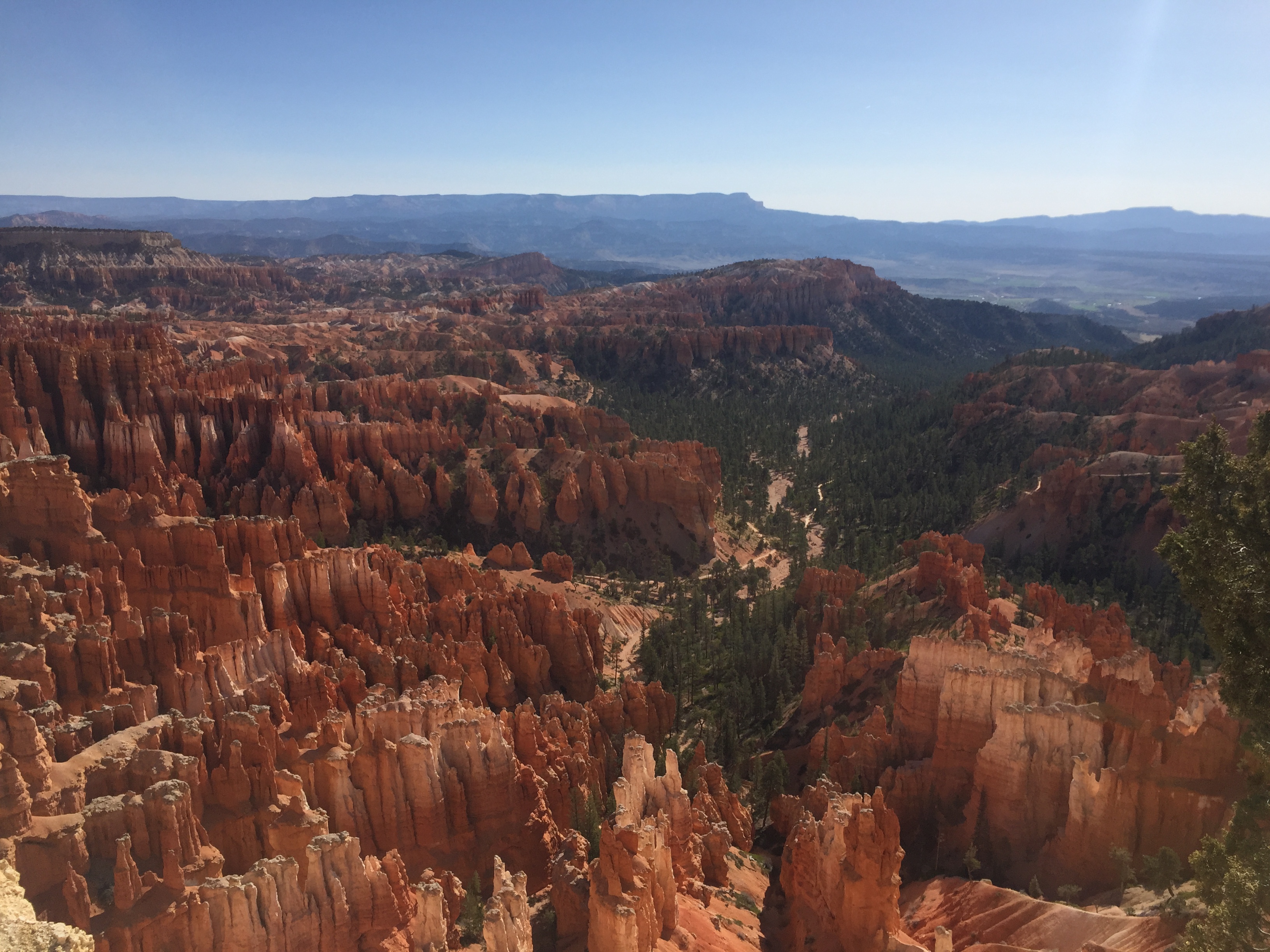 브라이스 캐니언은 고지대에 위치해 있어서 기온이 조금 낮다. 고지대라 그런지 나무도 침엽수들이 많은데, 높고 길게 자라는 침엽수와 높고 길게 쪼개진 붉은 바위가 아주 조화롭다.
