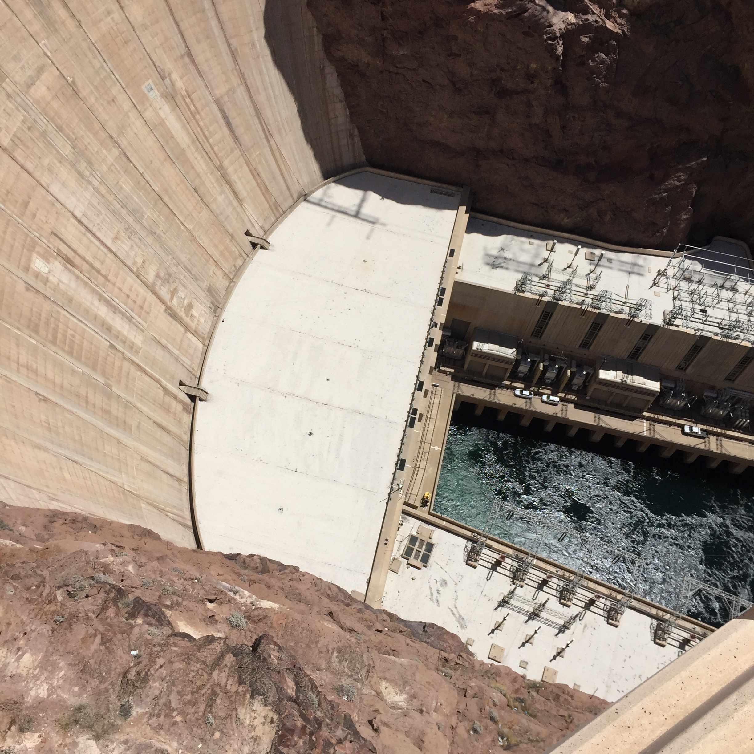 보기만 해도 아찔한 높이다. 후버댐에서는 물이 거꾸로 올라오는 신기한 경험을 할 수 있다. 후버댐 아래로 물을 뿌리면 상승하는 바람의 영향으로 작은 물방울이 다시 올라와서 얼굴에 맞는다.