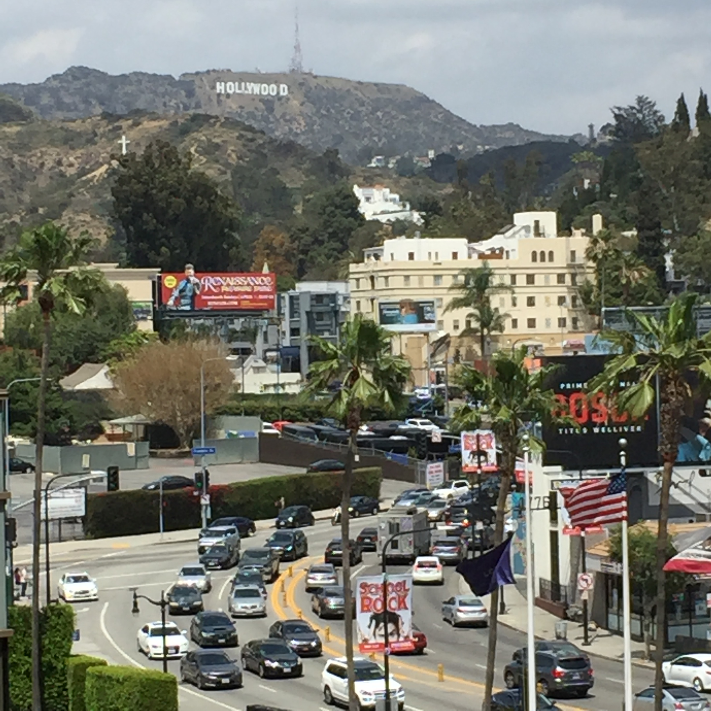 어느 건물 브릿지에서 보이는 할리우드 사인. 로스엔젤레스 거리 곳곳에서 보이는 할리우드 사인이다. 영화의 도시 로스엔젤레스에 왔구나 싶다.