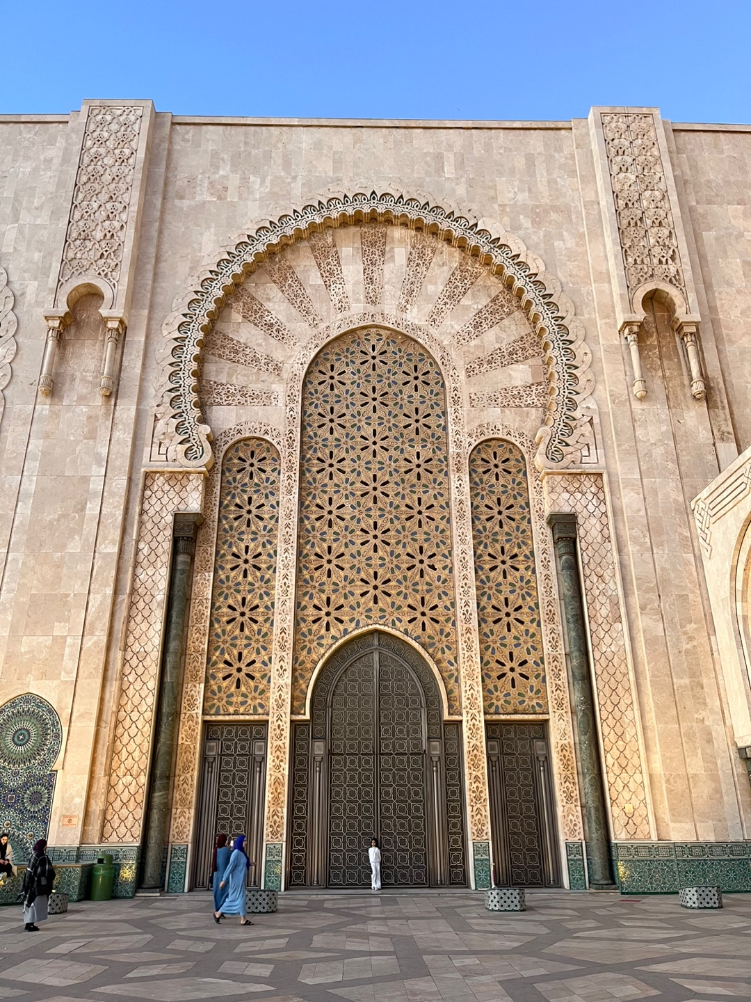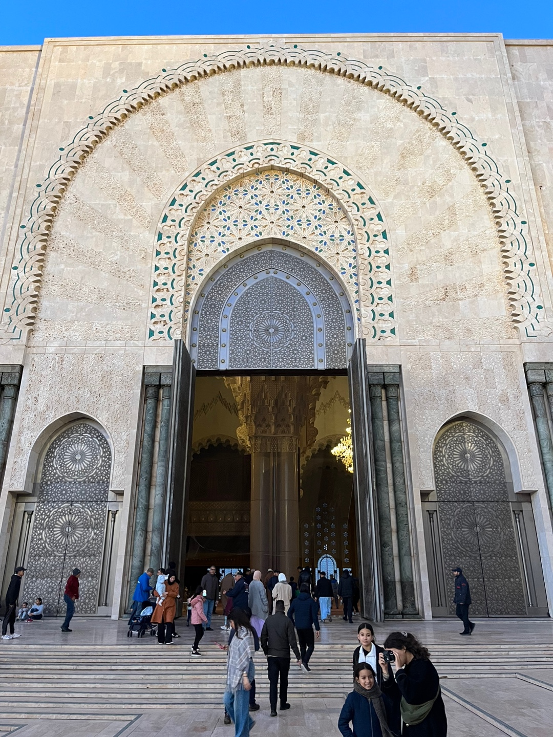 택시를 타고 드디어 도착한 하산 2세 모스크. 카사블랑카에 유명한 관광포인트가 없다보니 모로코의 국왕이 카사블랑카에서도 볼거리를 만들고, 종교적인 신앙심을 높이고자 이 모스크를 건축했다고 한다. 하산 2세 모스크를 건축할 당시에 건축비가 많이 들어 국민들에게 도움을 요청했다고 한다. 국민들이 기부 형식으로 공사비를 내 주었다고 한다.
