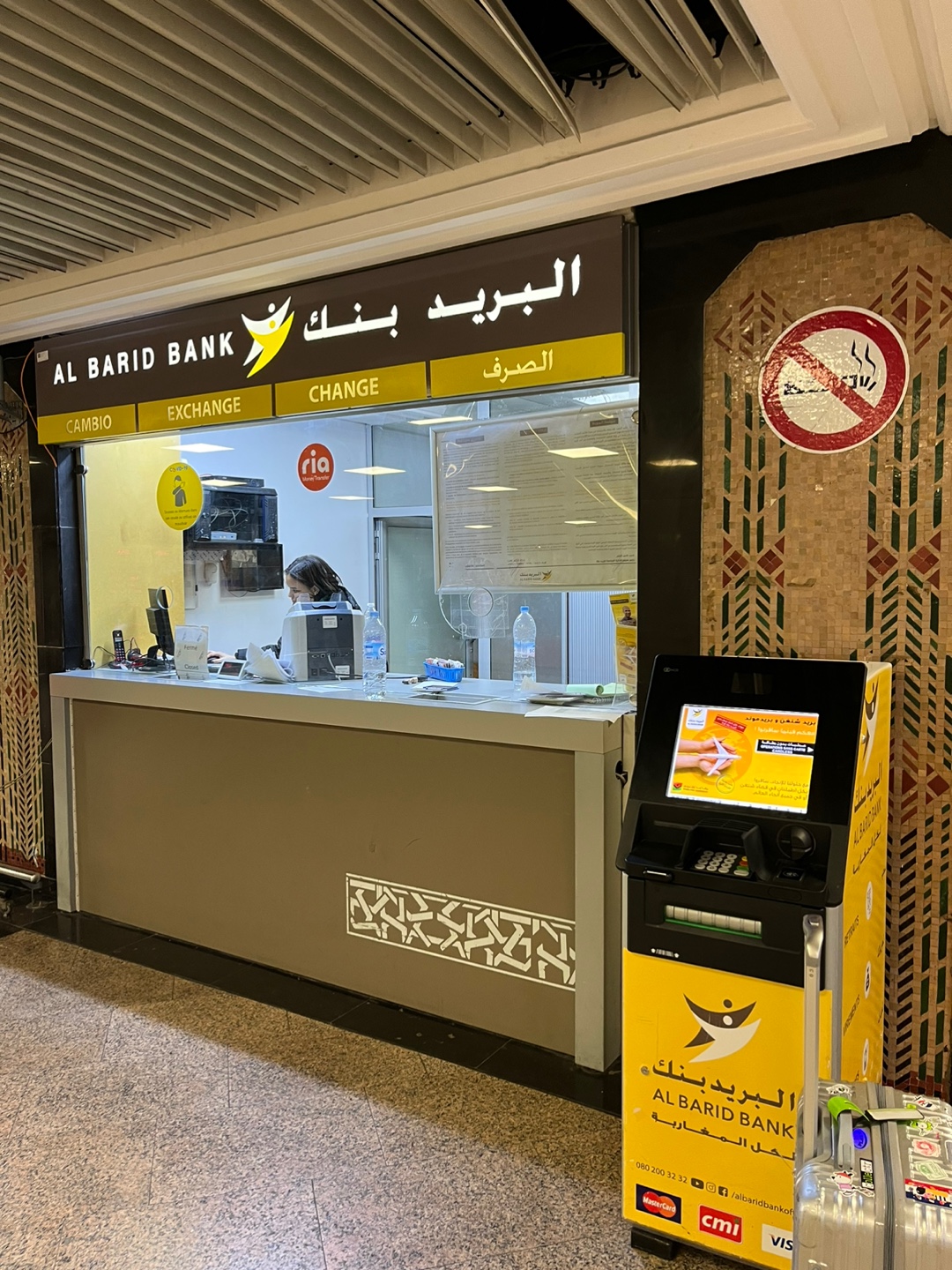 아가디르에서 돈을 다 쓴 터라 현금이 추가로 필요했다. 모로코에서도 하나카드 트래블로그 출금이 가능하다. 단, 달러를 충전 해야 한다. 달러를 충전하면 atm 기계에서 모로코 디르함을 뽑아주는 대신, 달러를 차감시킨다. 그리고 공항에는 환전소들이 몇 개 있는데 트래블로그 카드로 출금이 되는 곳은 여기 뿐이다. 진짜 공항에 있는 모든 환전소를 다 돌고 돌아 발견했다. 모함메드 5세 공항에 중간쯤에 있다. 기차를 타러 가는 곳 에서 아주 가까운 환전소다. 모로코 트래블로그카드로 출금 수수료를 아껴보자.