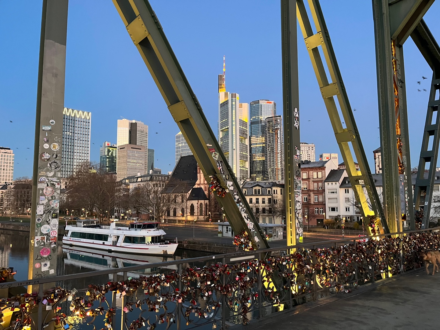 도착한 프랑크푸르트 마인강의 다리. Real Live 라고 써있는 낙서가 눈에 들어온다. 이 다리는 끝까지 걸어갔다가 보길 추천한다. 반대편에서 보는 프랑크푸르트 뷰가 정말 멋지기 때문이다.