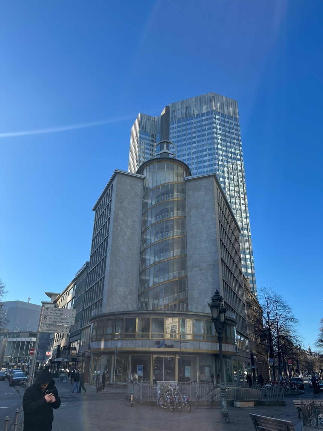 커다란 여럽 연합의 상징도 세워져 있다. 아무래도 독일이 유럽연합의 중심이기도 하고, 그중에서도 프랑크푸르트는 교통이 편리하기 때문에 프랑크푸르트에 관련된 건물이 있는 거 아닐까.