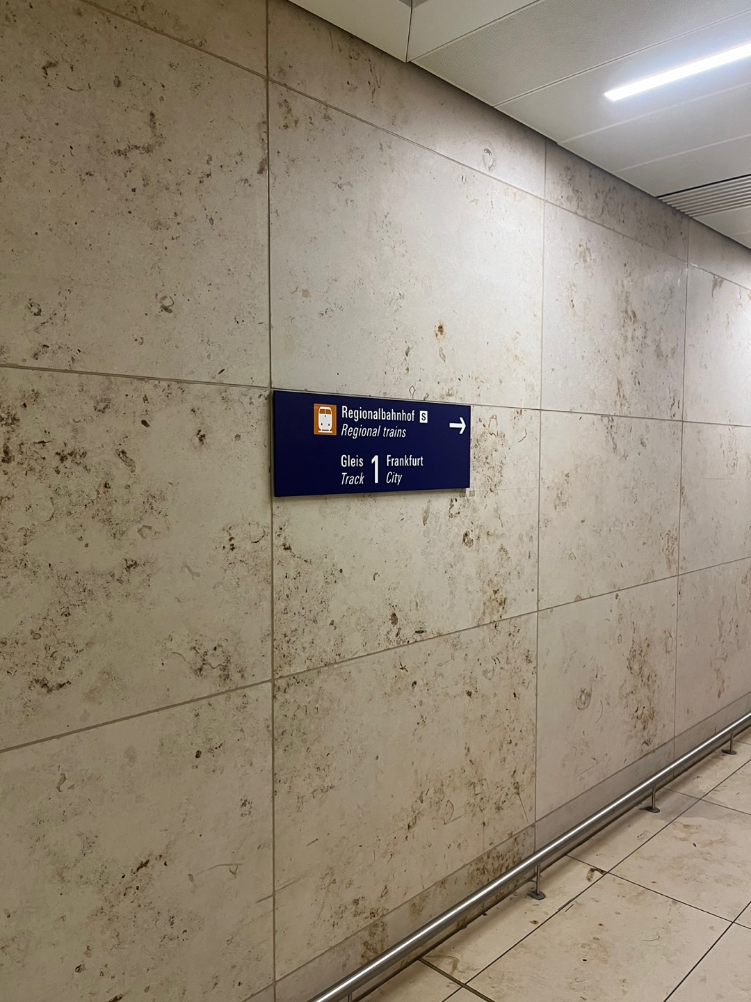 티켓 구매를 마치고 1번 플랫폼을 찾아간다. 찾기가 조금 어려울 수 있고, 표지판이 작으니 구석구석 잘 보면서 이동하면 좋다. S반 라인을 를 타면 되고, S8, S9중 아무거나 타도 된다. 방향 잘 확인하기 필수. Offenbach Ost / Hanau Hbf 방향을 타야한다. 나는 같이 타는 독일인에게 물어보아서 확인을 받았다.