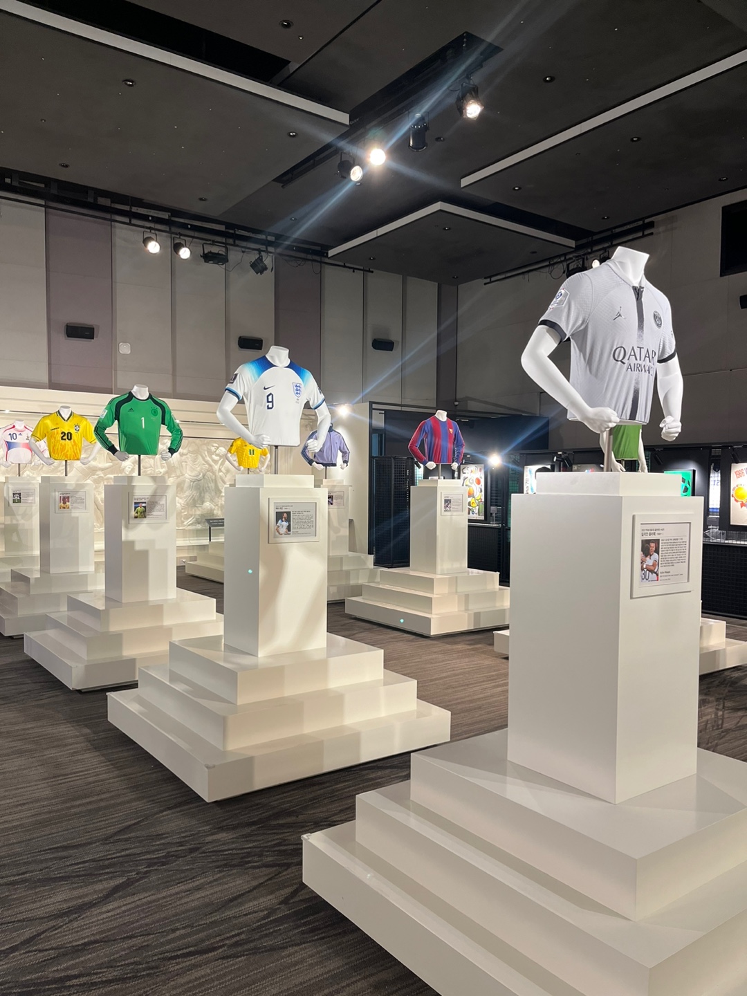 - 전설적인 선수들의 유니폼 👕: 펠레, 메시, 호날두, 베컴 등 세계적인 선수들의 실착 유니폼과 축구화가 전시!