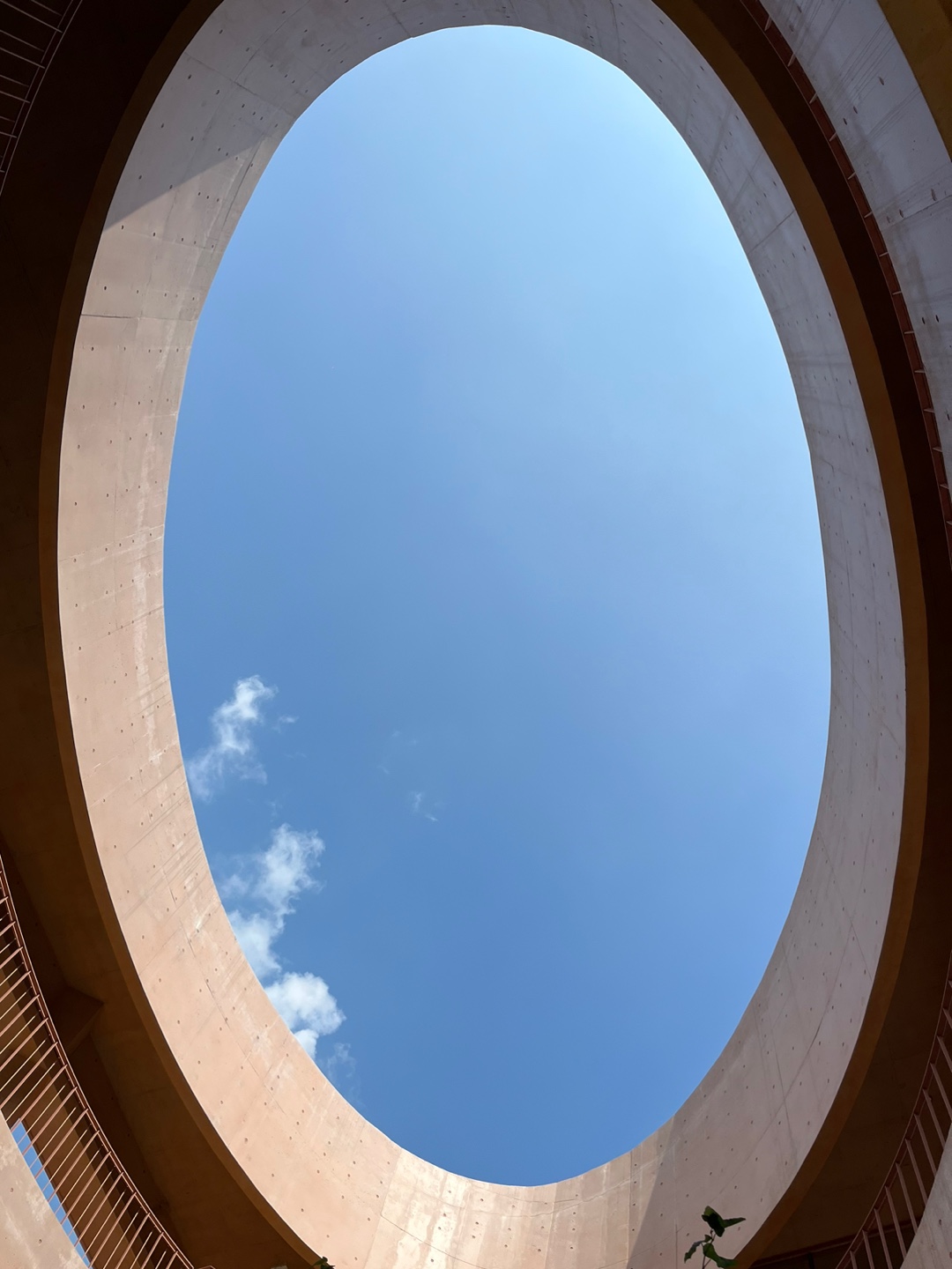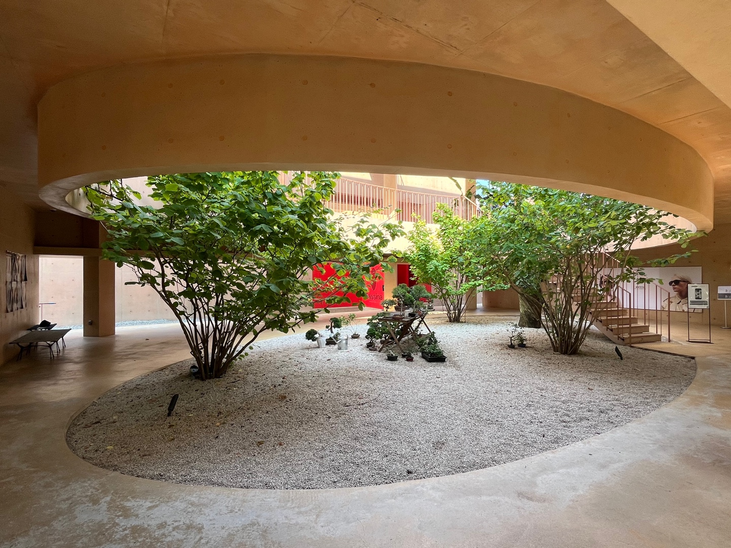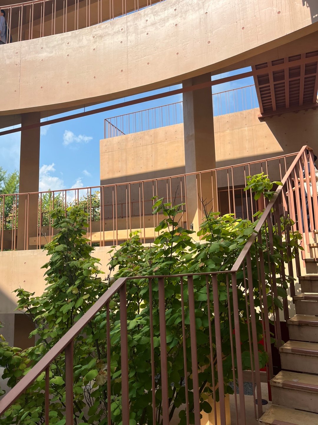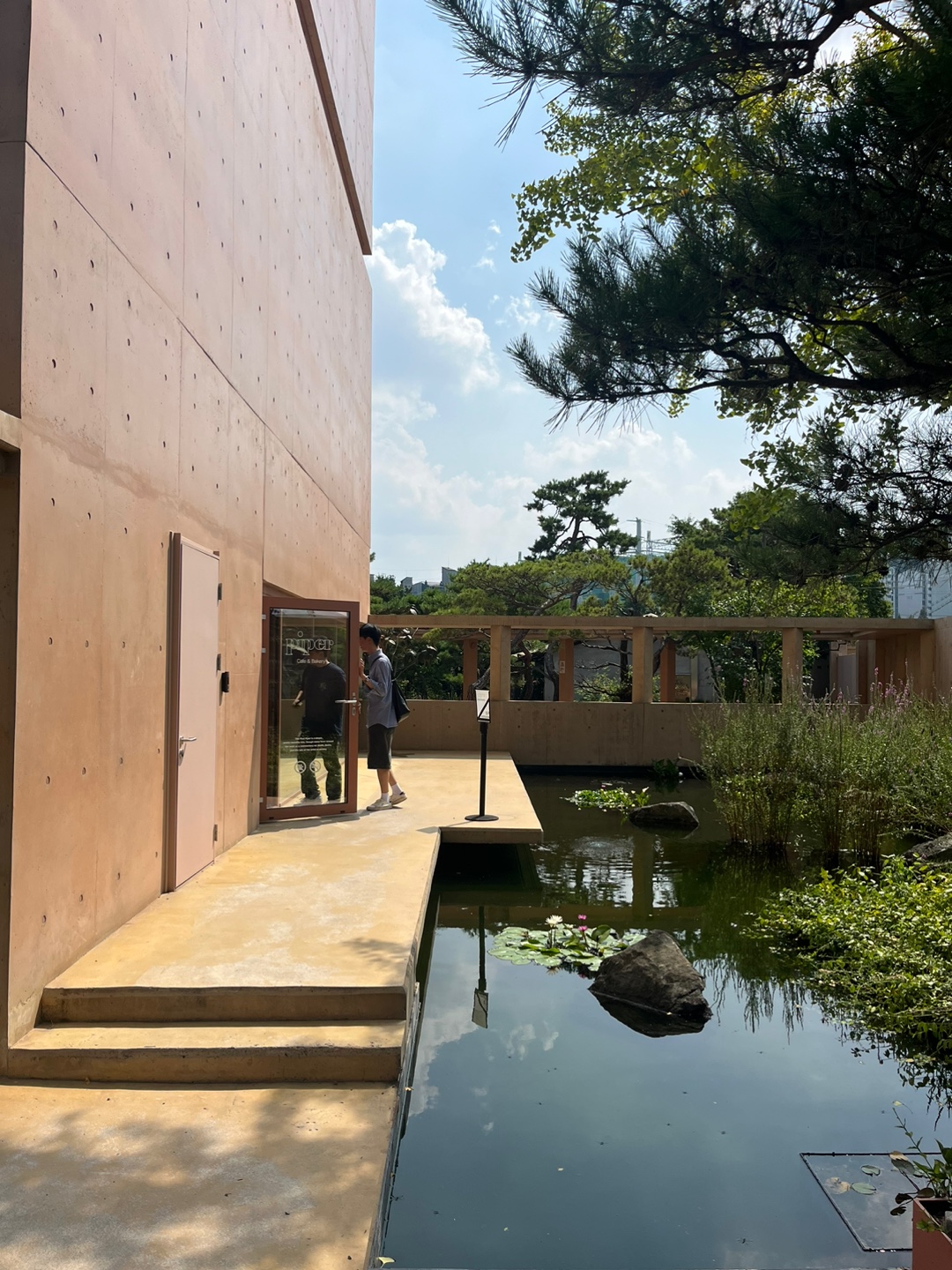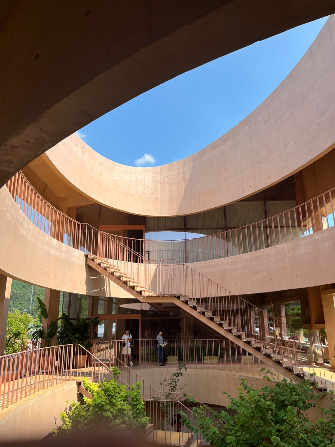 미래농원은 기존 농원을 복합문화공간으로 탈바꿈한 곳이에요. 건축물 자체가 예술 작품처럼 독특하고, 중앙 정원과 타원형 건물이 인상적이에요. 붉은 갈색이 정말 멋져요. 자연과 건축이 어우러져 힐링하기 딱 좋은 공간이에요. 🌿 특히 소나무 정원과 거울 벽이 만들어내는 풍경은 정말 아름다워요!