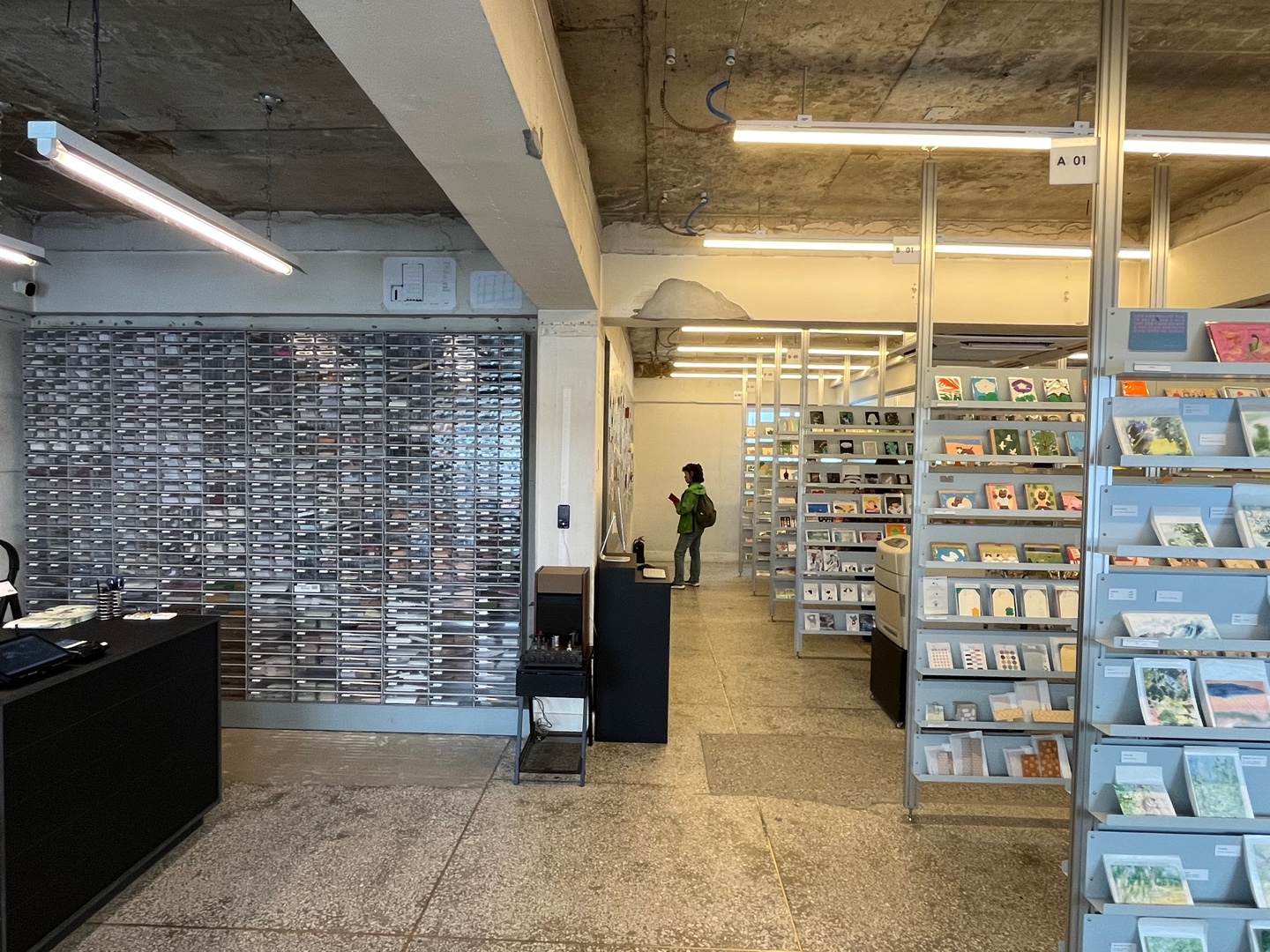 - 매장 한쪽에 있는 책상에서 엽서를 쓸 수 있어요. 특히 햇빛이 들어와서 따뜻한 느낌을 줍니다! 👥