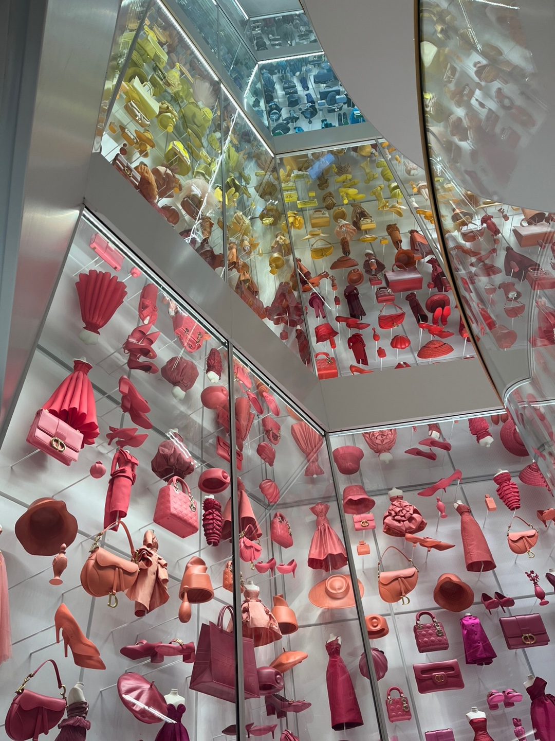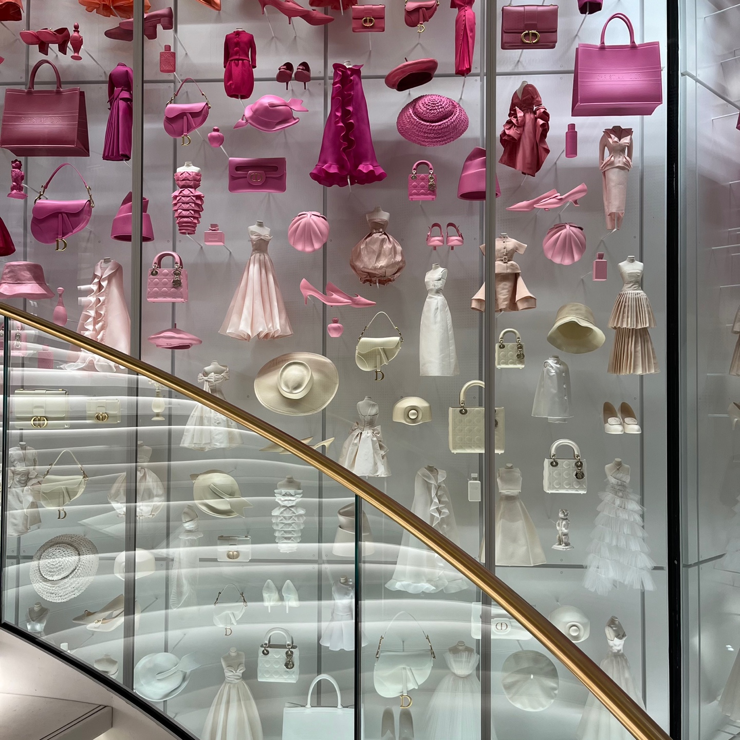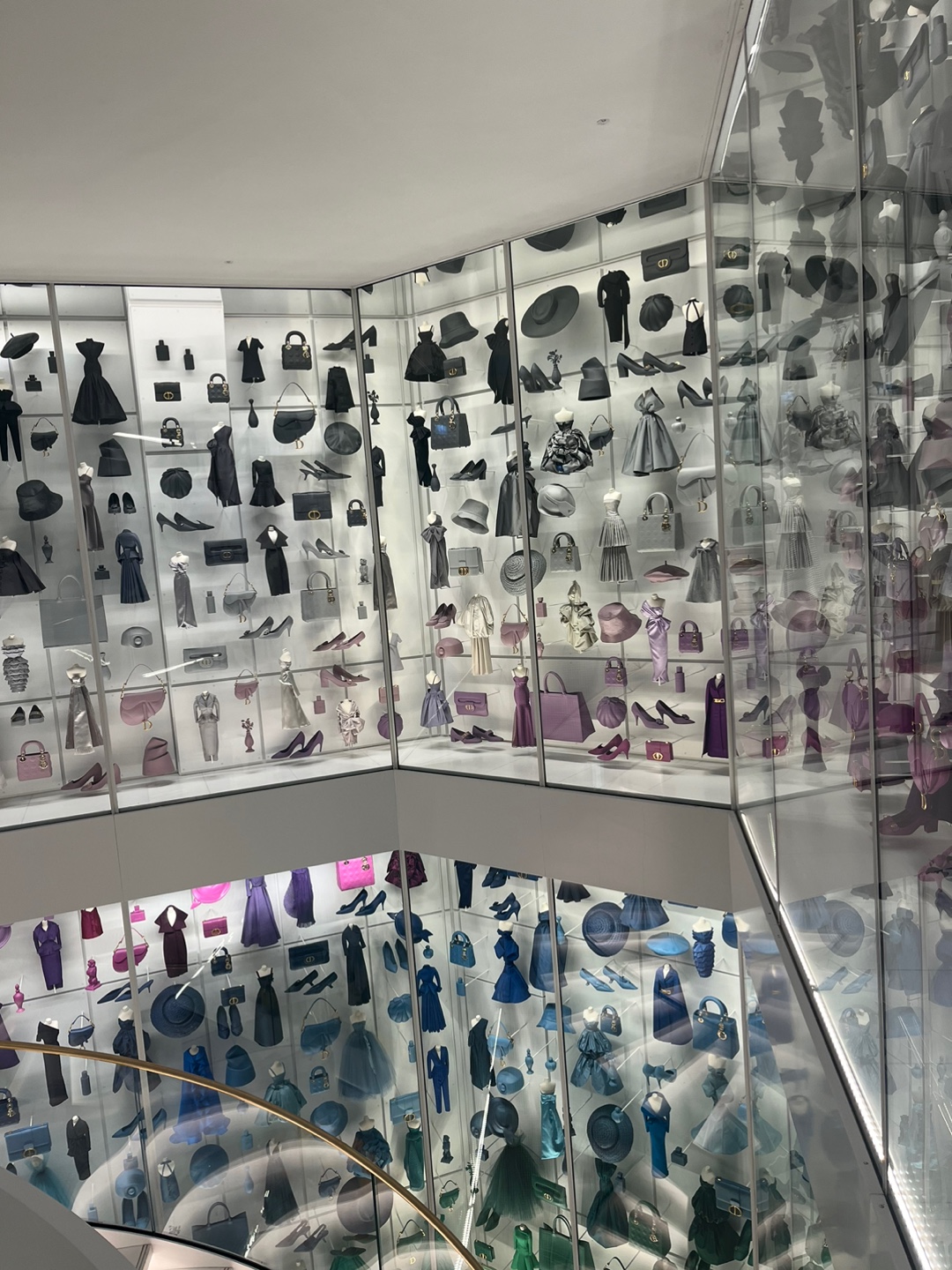 특히 갤러리의 나선형 계단을 따라 전시된 디오라마에서는 디올의 상징적인 제품들과 3D프린팅으로 제작된 1,422개의 미니어처 복제품을 만날 수 있어요. 핸드백, 구두, 향수, 드레스 등 디올의 정수를 작은 디테일 속에서 발견할 수 있답니다. 👜✨
