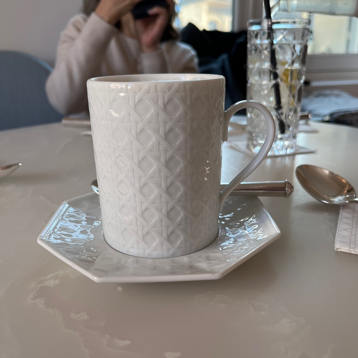 디올 갤러리의 카페에서는 디올의 우아함을 담은 디저트와 음료를 즐길 수 있어요. 🍰✨ 갤러리를 둘러본 후 이곳에서 한 잔의 커피와 함께 디올의 감성을 만끽해보세요. 디올의 패턴이 들어간 잔이 정말 예쁩니다. 음료와 디저트는 유럽기준으로도 약간 비싼편이나, 공간을 즐긴다고 보면 후회하지 않으실거에요. 디올 카페만 따로 이용은 불가능합니다!