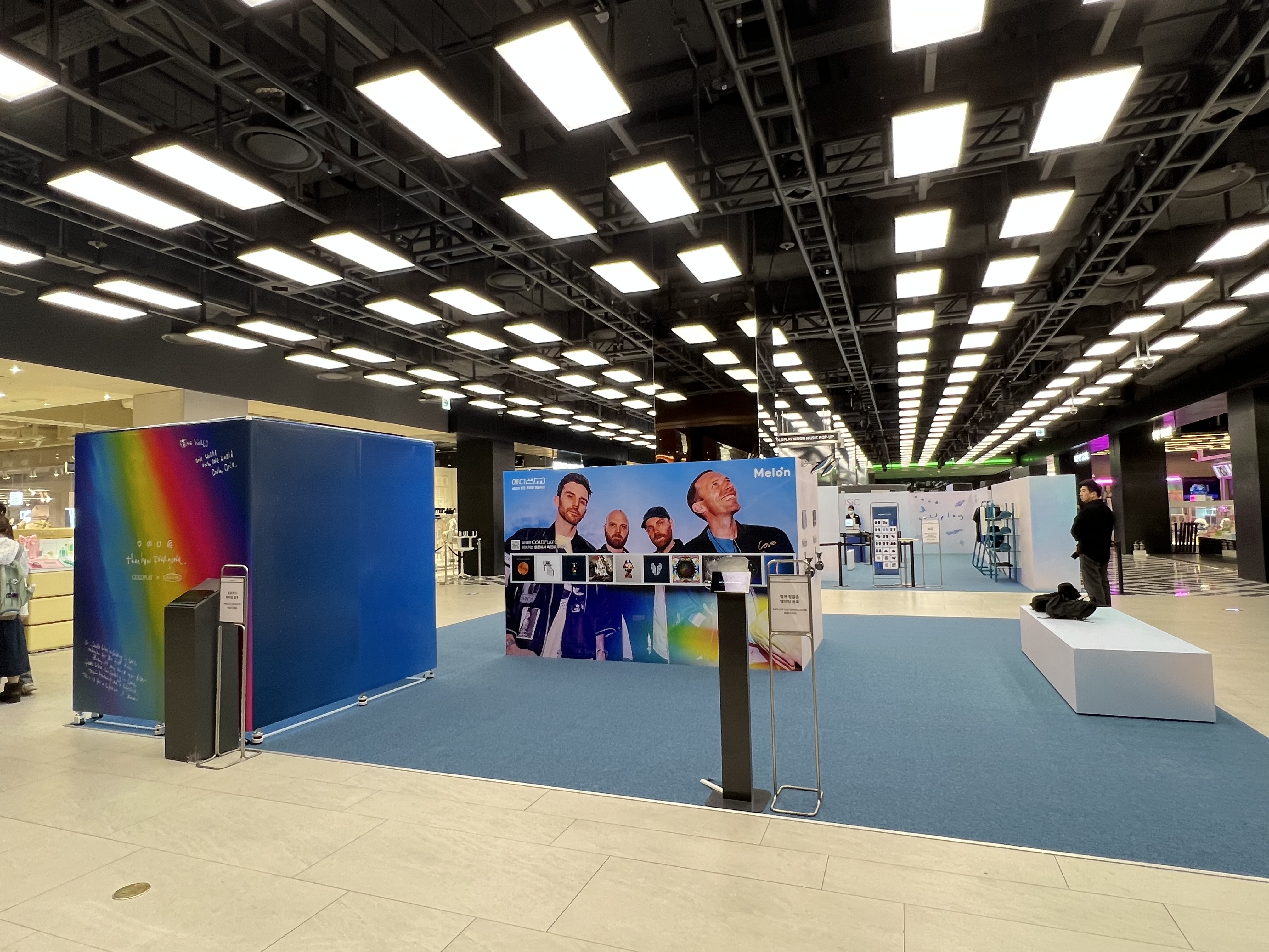 팝업스토어는 콜드플레이의 음악적 세계관을 담아 우주와 자연, 인간의 조화를 표현했어요. 따뜻하면서도 환상적인 분위기로 꾸며져 있어요. 🌈✨